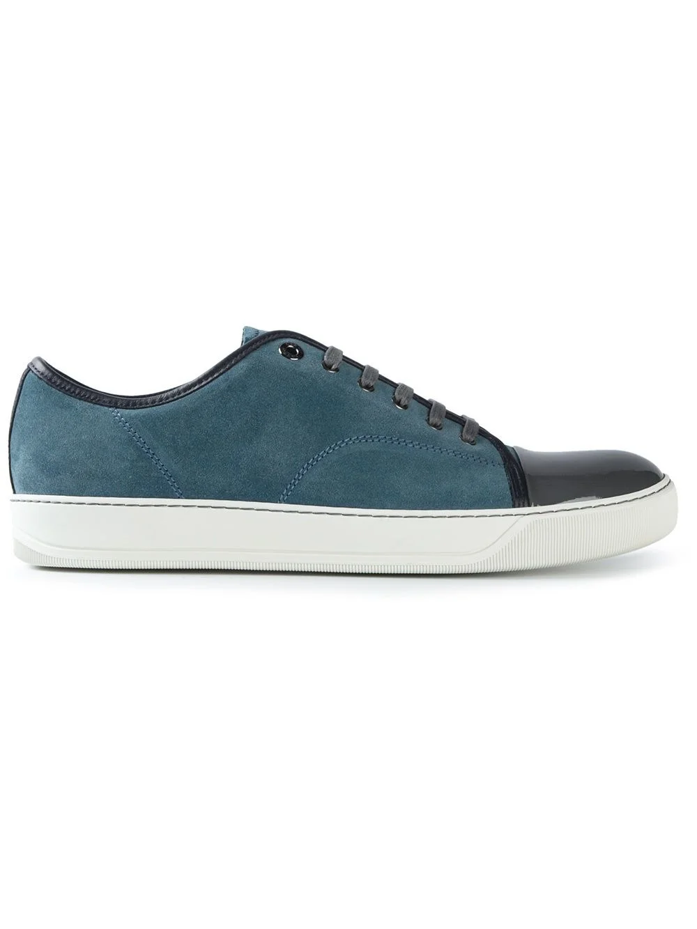 contrasted toe cap sneakers Blue leather contrasted toe cap sneakers from Lanvin featuring a round toe, a lace-up front fastening, a varnished detail and a white rubber sole. Imported Composition Sole: Rubber 100% Lining: Calf Leather 100% Outer: Calf Leather 100% SIZE & FIT FittingInformation This piece fits large – take one size down