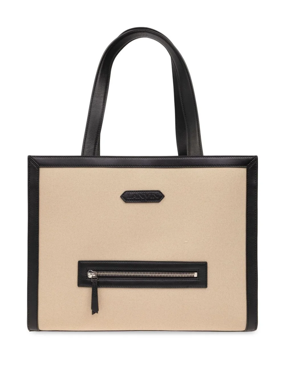 contrasting-trim cotton tote bag Highlights - Beige/black - Cotton canvas - Contrasting leather trim - Logo patch to the front - Open top - Two flat top handles - Front zip-fastening pocket - Main compartment - Removable pouch - Silver-tone hardware Made in Italy Composition Outer: Cotton 100%, Leather 100% SIZE & FIT Measurement HEIGHT 11.02 in(28 cm) WIDTH 14.17 in(36 cm)
