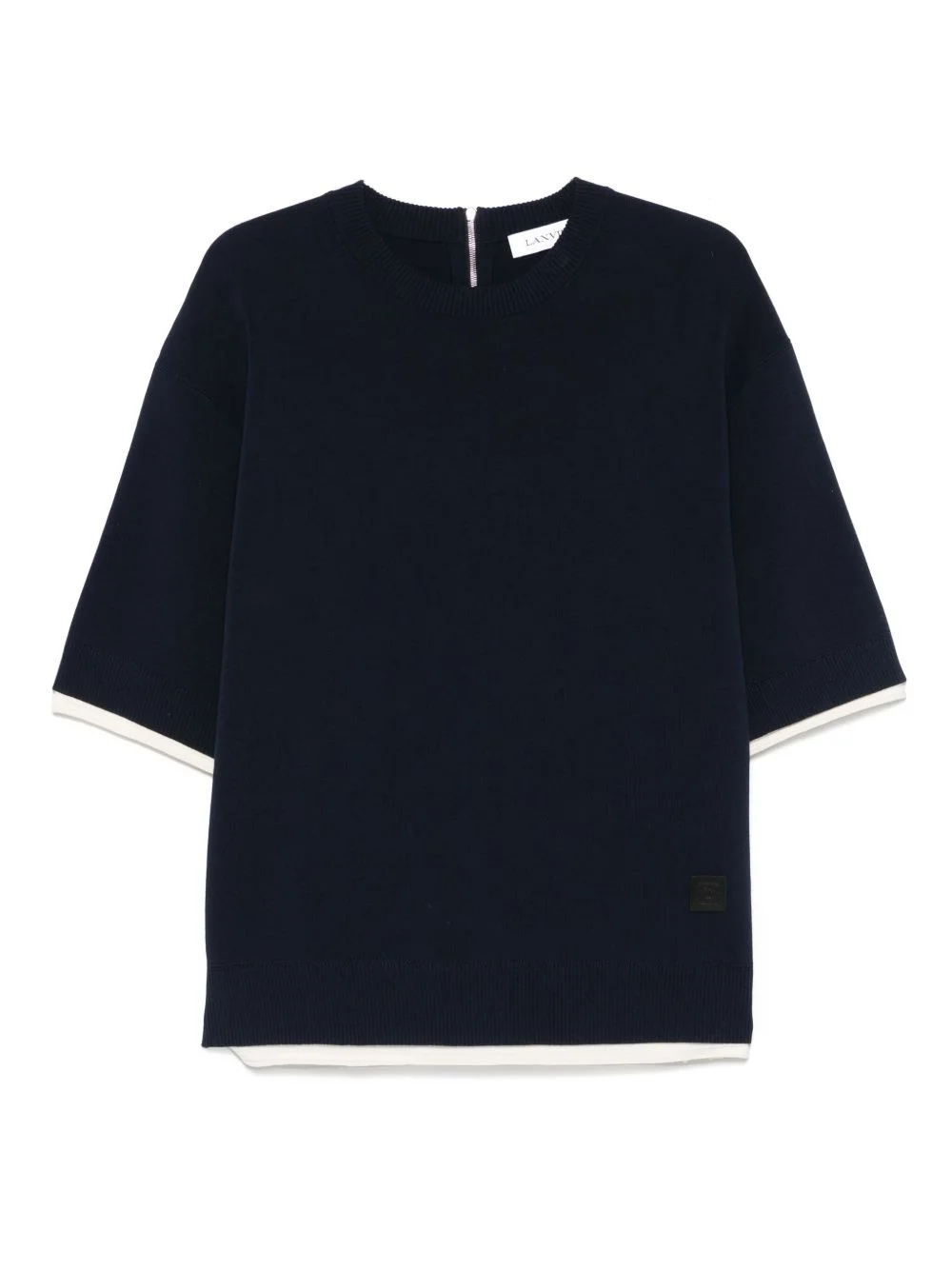 contrasting-trim T-shirt Highlights - Navy blue - Ribbed cuffs and hem - Short side slits - Short sleeves Imported Composition Cotton 100%, Calf Leather 100% SIZE & FIT Model measurements Height 6 ft 2 in(1.87 m) Bust/Chest 36.22 in(92 cm) Hips 37 in(94 cm) Waist 27.95 in(71 cm) FittingInformation Designed for a relaxed fit, this piece allows for comfort and movement when worn Made from a midweight non-stretch fabric, this piece offers minimal elasticity when worn
