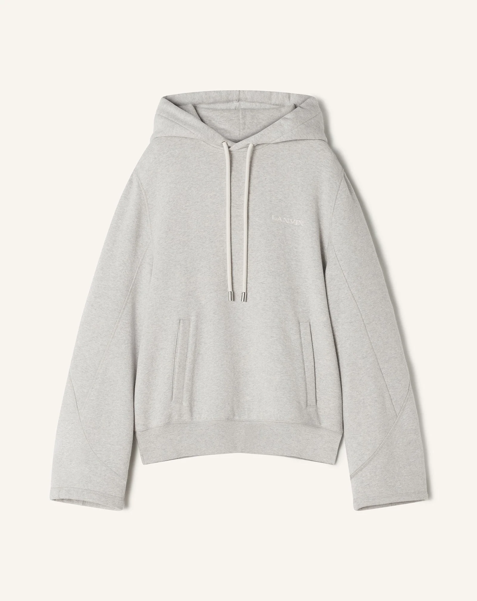 This collection presents a new high-quality fleece fabric that combines the comfort of cotton with the sophistication of cashmere. This hoodie features the Lanvin logo, for a touch of timeless elegance. It is the ideal for casual daywear. Details - Cotton and cashmere hoodie - Straight fit - Hood with contrasting metal-tipped drawstring - Loose-fit sleeves with topstitching details - Lanvin logo embroidered in contrasting thread - Made in Portugal Size & fit - This style fits true to size, take your normal size - For more information, please see our size guide. Composition - Main fabric : 90% cotton knitted,100% polyester knitted,10% cashmere knitted,100% polyester knitted SKU: RM-HO0004-F044-H251002XS