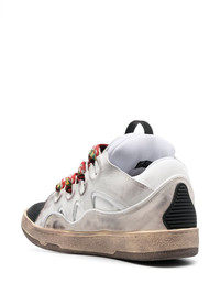 Curb chunky leather sneakers Inspired by '90s footwear, Lanvin's Curb sneakers are a throwback to the decade's exaggerated dimensions. They're crafted from panels of leather, suede and mesh and fitted with style-defining wide herringbone laces secured by oversized silver-tone eyelets. This iteration is rendered in white with a worn effect. Highlights - White - Leather - Front lace-up fastening - Panelled design - Round toe - Flat rubber sole Imported Composition Outer: Bos Taurus 60%, Polyester 32%, Polyamide 6%, Elastane 2% Lining: Polyester 38%, Polyamide 29%, Bos Taurus 25%, Elastane 8% Sole: Rubber 100% SIZE & FIT Measurement HEEL 1.37 in(3.5 cm) Sole height 1.18 in(3 cm)