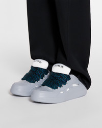 The essential street-style Color-Block Curb shoe is inspired by the iconic Curb sneakers. Comes with two pairs of laces and two removable sock-liners. One shoe, four different styles. Details - Curb color-block rubber sneakers - Almond toe - Two pairs of woven herringbone-pattern Curb laces (gray and blue/black). - Two sock-liners (white and blue). - Mother and Child logo and LANVIN logo embossed on the side. - Green sole - Double-layer laces in solid color - Color: pearl grey - Made in China Size and fit - This style fits true to size, take your normal size. - For more information, please see our size guide. Composition - Outer main material: 100% PET - Lining: 100% nylon® - Sole: 100% rubber Cleaning and care - All our items are shipped in a luxurious Lanvin gift box done in the colors of the brand. - At Lanvin, we take great care to ensure we only select the finest materials. To ensure the longevity of your shoes, be sure to treat them with care. - Protect from direct light, heat and rain - Fill shoe with tissue paper to help maintain the shape and absorb humidity, then store in the provided flannel bag and box - Clean with a soft, dry cloth or brush - If you have a question or concern, please contact our customer service department or visit one of our stores, where our staff will be happy to assist you and provide you with more information about our services. SKU: FM-SKAK00-MOLD-H231543