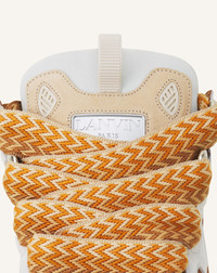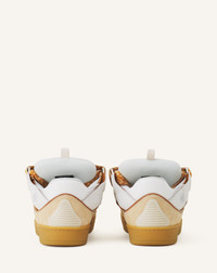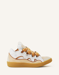 The Curb sneaker is a tribute to the skating community of the 90s. It embodies several of Jeanne Lanvin's signatures. Contrast, with the interplay of materials, textures and colors. The Ribbon, with oversized laces, symbolizing the union between mother and daughter. The Circle, with rounded lines inspired by Art Deco architecture. These sneakers have a side seam to ensure durability, good insulation from the cold and damp, and greater flexibility. This season, the Studio offers new color combinations, with hand-painted leathers. Details - Almond toe - Double herringbone woven laces, made in Greece - Quilted tongue with the Lanvin label and an embossed Mother and Child Daughter logo - Made in Portugal Size & fit - This style fits true to size, you may take your usual size. SKU: FU-SKDK12-BICO-E25B08335