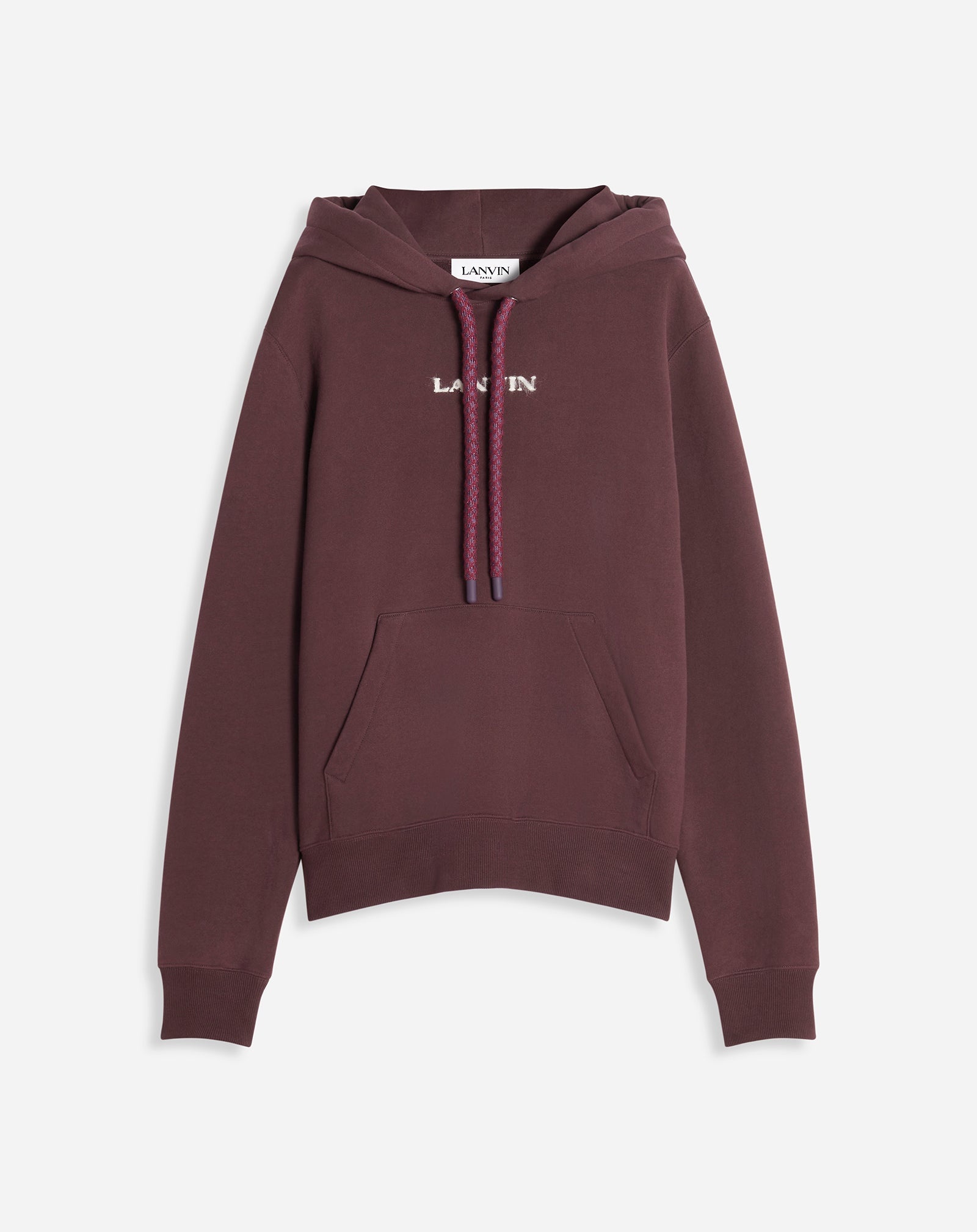The drawstring on the hood of this hoodie echoes the new, extra-large tubular laces of the Curb Snake sneaker that were inspired by the Serpents of Jeanne Lanvin's 1920s designs. This collection also introduces a felted interpretation of the House logo. Details - Curb Snake classic knit hoodie in cotton - Straight fit - Hood with drawstring - Kangaroo pocket - Contrasting embroidered Lanvin logo - Made in Italy Size & fit - For more information, please see our size guide. Composition - Main fabric : 100% cotton knitted SKU: RM-HO0001-J154-H2439S