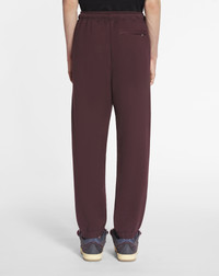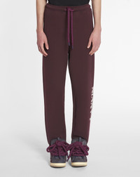 The drawstring on the waistband of these training pants echoes the new, extra-large tubular laces of the Curb Snake sneaker that were inspired by the Serpents of Jeanne Lanvin's 1920s designs. This garment also features the House logo for an elegant touch to a casual outfit. Details - Curb Snake training pants in cotton - Relaxed fit - Elastic waist with a drawstring - Side pockets and one back pocket - Contrasting embroidered Lanvin logo - Made in Italy Size & fit - This style fits true to size, take your normal size - For more information, please see our size guide. Composition - Main fabric : 100% cotton knitted SKU: RM-TR0066-J154-H2439S