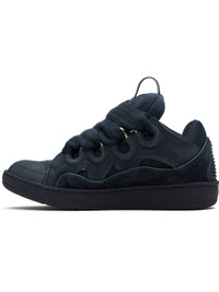 Low-top calfskin suede, grained calfskin, and mesh sneakers. · Piping, cutouts, and rubberized trim throughout · Perforations at toe · Logo embossed at toe and outer side · Lace-up closure · Logo plaque and pull-loop at tongue · Padded tongue and collar · Jersey lining · Treaded rubber sole Supplier color: Navy blue Upper: calfskin, textile. Sole: rubber. Made in Portugal 251254M237078