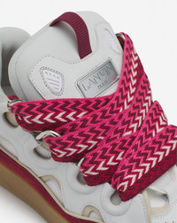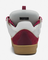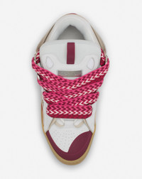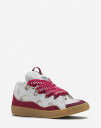 The Curb sneaker is a tribute to the skating community of the 90s. It embodies several of Jeanne Lanvin's signatures. Contrast, with the interplay of materials, textures and colors. The Ribbon, with oversized laces, symbolizing the union between mother and daughter. The Circle, with rounded lines inspired by Art Deco architecture. These sneakers have a side seam to ensure durability, good insulation from the cold and damp, and greater flexibility. This season, the Studio offers new color combinations, with hand-painted leathers. Details - Almond toe - Double herringbone woven laces, made in Greece - Quilted tongue with the Lanvin label and an embossed Mother and Child Daughter logo - Made in Portugal Size & fit - This style fits true to size, you may take your usual size. SKU: FU-SKDK12-BICO-E25059849
