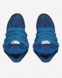 The '90s-inspired Curb sneaker features an assertive design and an exaggerated silhouette. Crafted from nappa calfskin, suede, and mesh, this elaborately constructed design delivers ultimate comfort thanks to its rounded shape, padded tongue, and metallic eyelets. Details - Curb monochrome leather sneakers - Exclusive design with upper and sole in the same color - Almond toe - Waxed and woven double laces with herringbone pattern - Quilted tongue with Lanvin label and embossed Mother and Daughter logo - Made in Portugal Size & fit - This style fits true to size, you may take your usual size. - The size displayed corresponds to a French size SKU: FU-SKDK12-MONO-P2528149