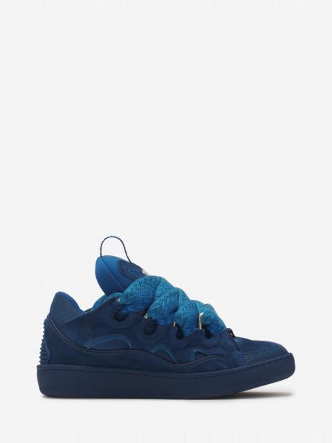 The '90s-inspired Curb sneaker features an assertive design and an exaggerated silhouette. Crafted from nappa calfskin, suede, and mesh, this elaborately constructed design delivers ultimate comfort thanks to its rounded shape, padded tongue, and metallic eyelets. Details - Curb monochrome leather sneakers - Exclusive design with upper and sole in the same color - Almond toe - Waxed and woven double laces with herringbone pattern - Quilted tongue with Lanvin label and embossed Mother and Daughter logo - Made in Portugal Size & fit - This style fits true to size, you may take your usual size. - The size displayed corresponds to a French size SKU: FU-SKDK12-MONO-P2541449