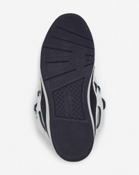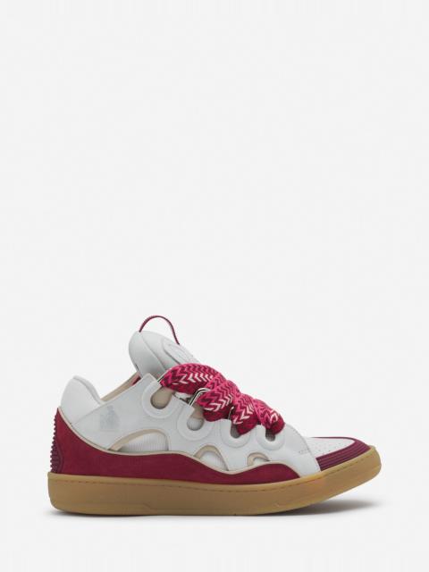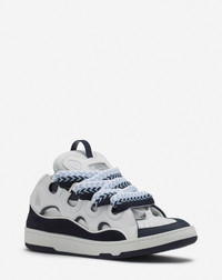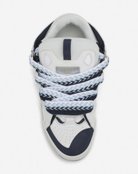 The Curb sneaker is a tribute to the skating community of the 90s. It embodies several of Jeanne Lanvin's signatures. Contrast, with the interplay of materials, textures and colors. The Ribbon, with oversized laces, symbolizing the union between mother and daughter. The Circle, with rounded lines inspired by Art Deco architecture. These sneakers have a side seam to ensure durability, good insulation from the cold and damp, and greater flexibility. This season, the Studio offers new color combinations, with hand-painted leathers. Details - Almond toe - Double herringbone woven laces, made in Greece - Quilted tongue with the Lanvin label and an embossed Mother and Child Daughter logo - Made in Portugal Size & fit - This style fits true to size, you may take your usual size. SKU: FU-SKDK12-BICO-E25002949