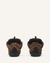 The Curb sneaker embodies the vibrant spirit of the 90s, with its bold, oversized silhouette.It embodies several of the House's signatures: Contrast, with a variety of materials, textures and colors. The ribbon, which represented the bond between a mother and daughter for Jeanne Lanvin, with oversized laces made in Greece, double waxed and featuring a chevron motif. And finally, the Circle, with rounded lines, an architectural detail inspired by Art Deco. This season, the Studio presents a leopard-print pony leather version that combines the House's couture heritage with contemporary sneaker codes. Details - Curb sneakers in pony leather with a leopard print - Waxed and woven double laces with a herringbone motif - Quilted tongue with the Lanvin label and an embossed Mother and Daughter logo - Made in Portugal Size & fit - This style fits true to size, you may take your usual size. - The size displayed corresponds to a French size SKU: FU-SKDK12-POLE-P26051035