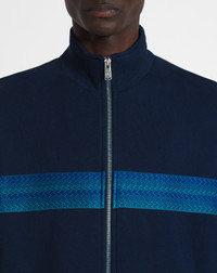 This jacket features the herringbone motif found on the laces of the Curb, the House's iconic sneaker. Its casual elegance is perfect for informal daywear. Details - Curb zipped cotton jacket - Mock turtleneck - Ribbed cuffs - Metal zipper fastening - Two zipped side pockets - Embroidered Curb motif - Made in Italy Size & fit - This style fits true to size, take your normal size - For more information, please see our size guide. Composition - Main fabric : 100% cotton knitted,100% polyester knitted SKU: RM-JA0082-J212-P25281S