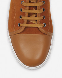 The classic design of these iconic and timeless DBB1 sneakers is reinvented every season, for an impeccably modern look. With this collection, it combines two materials, leather and suede, to create a contrast, a signature component of Jeanne Lanvin's universe Details - DBB1 leather and suede sneakers - Round toe - Tone-on-tone nappa calfskin leather tip - Lace-up closure - Lanvin's exclusive white rubber sole - Made in Portugal Size & fit - This style fits true to size, you may take your usual size. - The size displayed corresponds to a UK size SKU: FM-SKDBB1-ANAP-P15600010