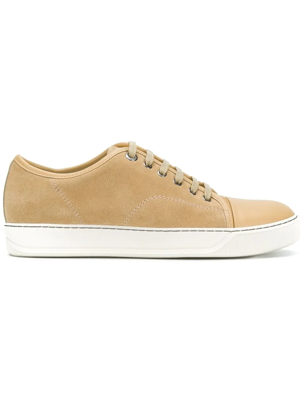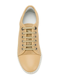 toe-capped sneakers The designer stripped back for Lanvin’s SS18 collection, wanting the pieces to be purely ‘about the cut, construction, and proportion’. Crafted in Italy from vanilla beige leather and calf leather, these toe-capped sneakers from Lanvin feature a round toe, a lace-up front fastening, a branded insole and a white rubber sole. Imported Composition Outer: Calf Suede 100% Sole: Rubber 100% Lining: Calf Leather 100% SIZE & FIT FittingInformation This piece fits large – take one size down Measurement Sole height 0.78 in(2 cm) HEEL 0.98 in(2.5 cm)