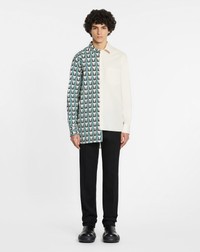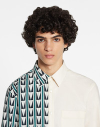 Details - Dual-Print Shirt with Art Deco-Inspired Triangles - Color: Teal - Multicolored cotton poplin dual-print/asymmetrical shirt featuring a panel printed with art deco-inspired triangles and contrasting plain white panel with patch pocket. - The shirt has mother-of-pearl buttons. - Made in Italy Composition - Main Material: 100% cotton Cleaning and care - Contains non-textile parts of animal origin - Turn inside out before cleaning - Have cleaned by a luxury dry cleaning specialist only SKU: RM-SI0011-5542-H2244437