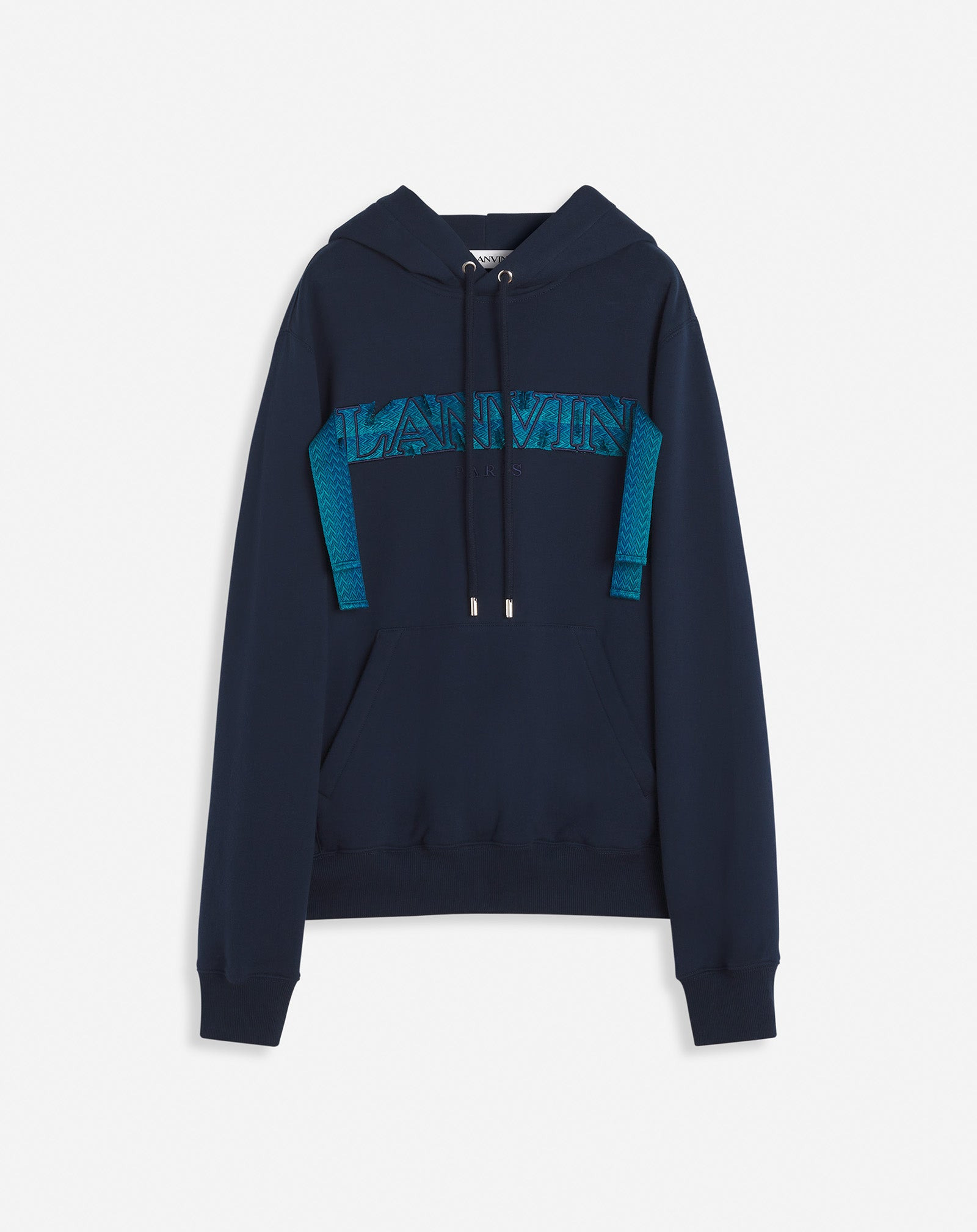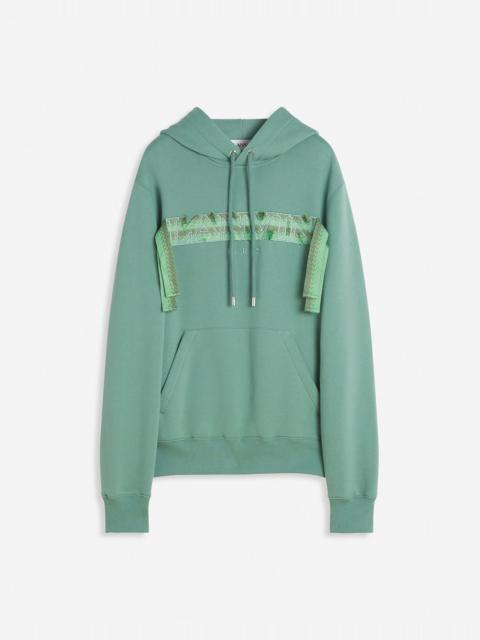 Taking its inspiration from the House's iconic Curb sneaker, this hoodie features its timeless laces. These come with the Lanvin logo for an added touch of elegance to a casual outfit. Details - Lanvin Curb lace hoodie in cotton - Straight fit - Hood with drawstring - Ribbed cuffs - Kangaroo pocket in front Size & fit - This style fits true to size, take your normal size - For more information, please see our size guide. Composition - Main fabric : 100% cotton knitted,100% polyester knitted SKU: RM-HO0001-J199-P25281S