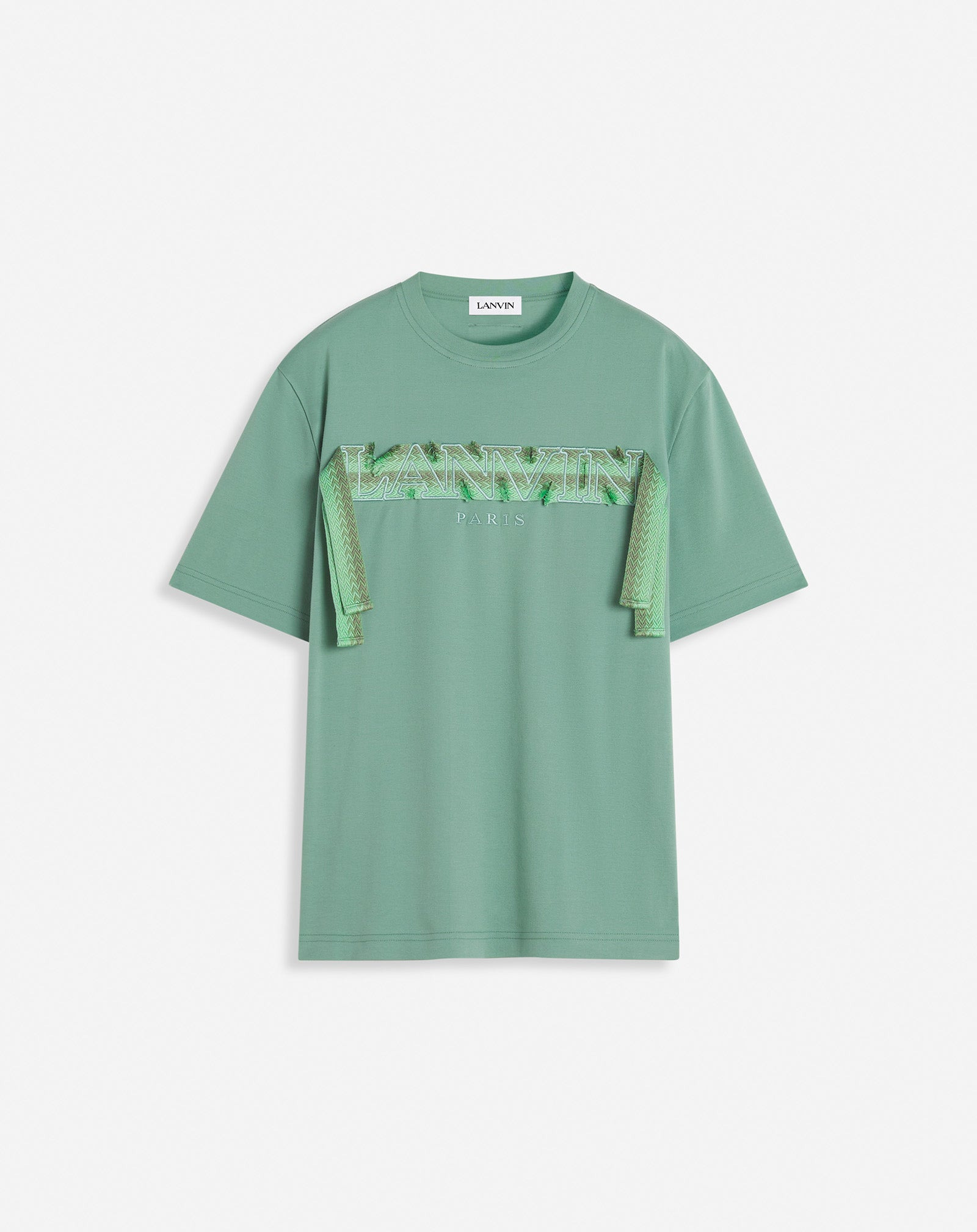 Inspired by the House's iconic Curb sneaker, this t-shirt features its timeless laces. These come with the Lanvin logo for an added touch of elegance to a casual outfit. Details - Lanvin Curb lace T-shirt in cotton - Straight fit - Round neck - Embroidered Curb motif with the Lanvin logo - Made in Italy Size & fit - This style fits true to size, take your normal size - For more information, please see our size guide. Composition - Main fabric : 100% cotton knitted,100% polyester knitted SKU: RM-TS0115-J198-P25414S