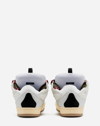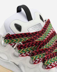 The Curb is a sneaker inspired by the 90s, with a confident design and exaggerated dimensions. Made in nappa calfskin, suede and mesh, this elaborately constructed shoe stands out for its extraordinary comfort thanks to the rounded shape, padded tongue, and curved metallic eyelets. Details - Leather and Glitter technical material Curb sneakers - Color: white - Quilted tongue with Lanvin label and embossed Mother and Child logo - Double waxed laces with Lurex weave - Made in Portugal Composition - Main material: 100% calfskin - Material 2: 100% calfskin - Material 3: 100% polyester weave - Lining: 82% polyester weave, 18% Elastane - Sole: Rubber Cleaning and care - Clean gently with a soft cloth or bristled brush without products. - Store in a dry, dark place in its original packaging. SKU: FM-SKRK11-DRLX-A220039