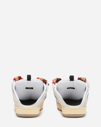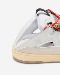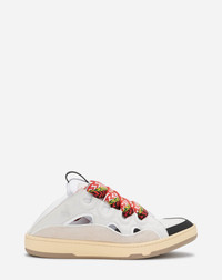 The new innovation of the Summer 2022 season, the Curb mule has completed the line in an even more casual spirit. The Curb is a sneaker inspired by the 90s, with a confident design and exaggerated dimensions. Made in nappa calfskin, suede and mesh, this elaborately constructed shoe stands out for its extraordinary comfort thanks to the rounded shape, padded tongue, and curved metallic eyelets. Details - Nappa calfskin, suede and mesh Curb mule sneakers - Color: white - Quilted tongue with Lanvin label and embossed Mother and Child logo - Double waxed and woven herringbone laces - Made in Portugal Composition - Main material: mesh - Material 2: calfskin - Material 3: nubuck - Sole: rubber Cleaning and care - Clean gently with a soft cloth or bristled brush without products. - Store in a dry, dark place in its original packaging. SKU: FM-SKDM02-DRAG-E220039