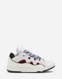 The Curb is a sneaker inspired by the 90s, with a confident design and exaggerated dimensions. Made in nappa calfskin, suede and mesh, this elaborately constructed shoe stands out for its extraordinary comfort thanks to the rounded shape, padded tongue, and curved metallic eyelets. Details - Curb sneakers in nappa calfskin, suede and mesh - Colors: Light grey, Blue - Quilted tongue with Lanvin label and embossed Mother and Child logo - Double waxed and woven herringbone laces - Made in Portugal Composition - Main material: Mesh - Material 2: Calfskin - Material 3: Nubuck - Sole: Rubber Cleaning and care - Clean gently with a soft cloth or bristled brush without products. - Store in a dry, dark place in its original packaging. FM-SKRK11-DRAG-E221220