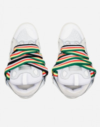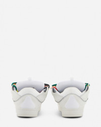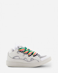 The Curb is a sneaker inspired by the 90s, with a confident design and exaggerated dimensions. Made in nappa calfskin, suede and mesh, this elaborately constructed shoe stands out for its extraordinary comfort thanks to the rounded shape, padded tongue, and curved metallic eyelets. Details - Curb sneakers in nubuck, calfskin leather and reflective material - Color: white - Quilted tongue with Lanvin label and embossed Mother and Child logo - Double waxed and woven laces - Made in Portugal Composition - Main material: mesh - Secondary material: calfskin - Third material: nubuck - Fourth material: reflective material - Sole: rubber Cleaning and care - Clean gently with a soft cloth or bristled brush without products. - Store in a dry, dark place in its original packaging. FM-SKRK11-REFL-P2200