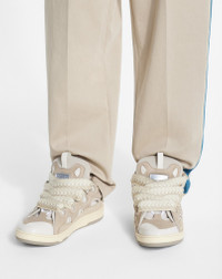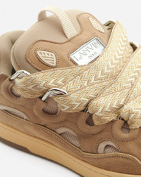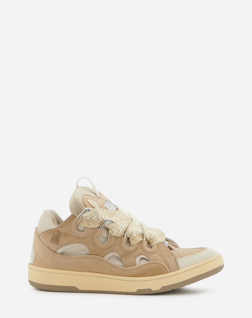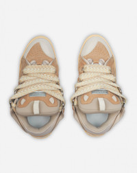 The Curb is a sneaker inspired by the 90s, with a confident design and exaggerated dimensions. Made in nappa calfskin, suede and mesh, this elaborately constructed shoe stands out for its extraordinary comfort thanks to the rounded shape, padded tongue, and curved metallic eyelets. Details - Curb sneakers in nappa calfskin, suede and mesh - Color: ecru - Quilted tongue with Lanvin label and embossed Mother and Child logo - Double waxed and woven herringbone laces - Made in Portugal Composition - Main material: mesh - Material 2: calfskin - Material 3: nubuck - Sole: rubber Cleaning and care - Clean gently with a soft cloth or bristled brush without products. - Store in a dry, dark place in its original packaging. FM-SKRK11-DRAG-E2202