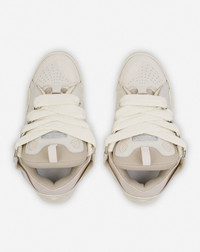 The Curb is a '90s-inspired sneaker with an assertive design and exaggerated volumes. The sophisticated design features nappa calfskin, suede and mesh, and is enhanced with metallic eyelets. This model offers the ultimate in comfort, thanks to its round shape and padded tongue. Details - Curb Sneakers in monochrome leather - Almond toe - Waxed and woven double laces with a herringbone motif - Quilted tongue with the Lanvin label and embossed Mother and Daughter logo - Made in Portugal Size & fit - This style fits true to size, you may take your usual size. - The size displayed corresponds to a French size SKU: FM-SKRK11-MONO-E2496139