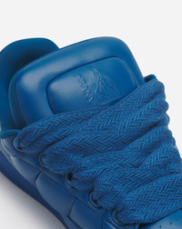 This collection introduces the Curb XL, an oversized quilted version of the 90s-inspired Curb sneakers, with a confident design and exaggerated dimensions. Details - Leather Curb XL sneakers - Color: Blue - Made in Portugal - Quilted tongue with debossed Lanvin and Mother and Child logos - Herringbone woven laces - LANVIN logo embossed on the back Composition - Main material: Lambskin - Material 2: Woven polyester - Lining: 29% Woven polyamide, 38% woven polyester, 8% Elastane, 25% Calfskin - Sole: Rubber Cleaning and care - Clean gently with a soft cloth or bristled brush without products. - Store in a dry, dark place in their original packaging. SKU: FM-SKDK0C-NAPA-A23202039
