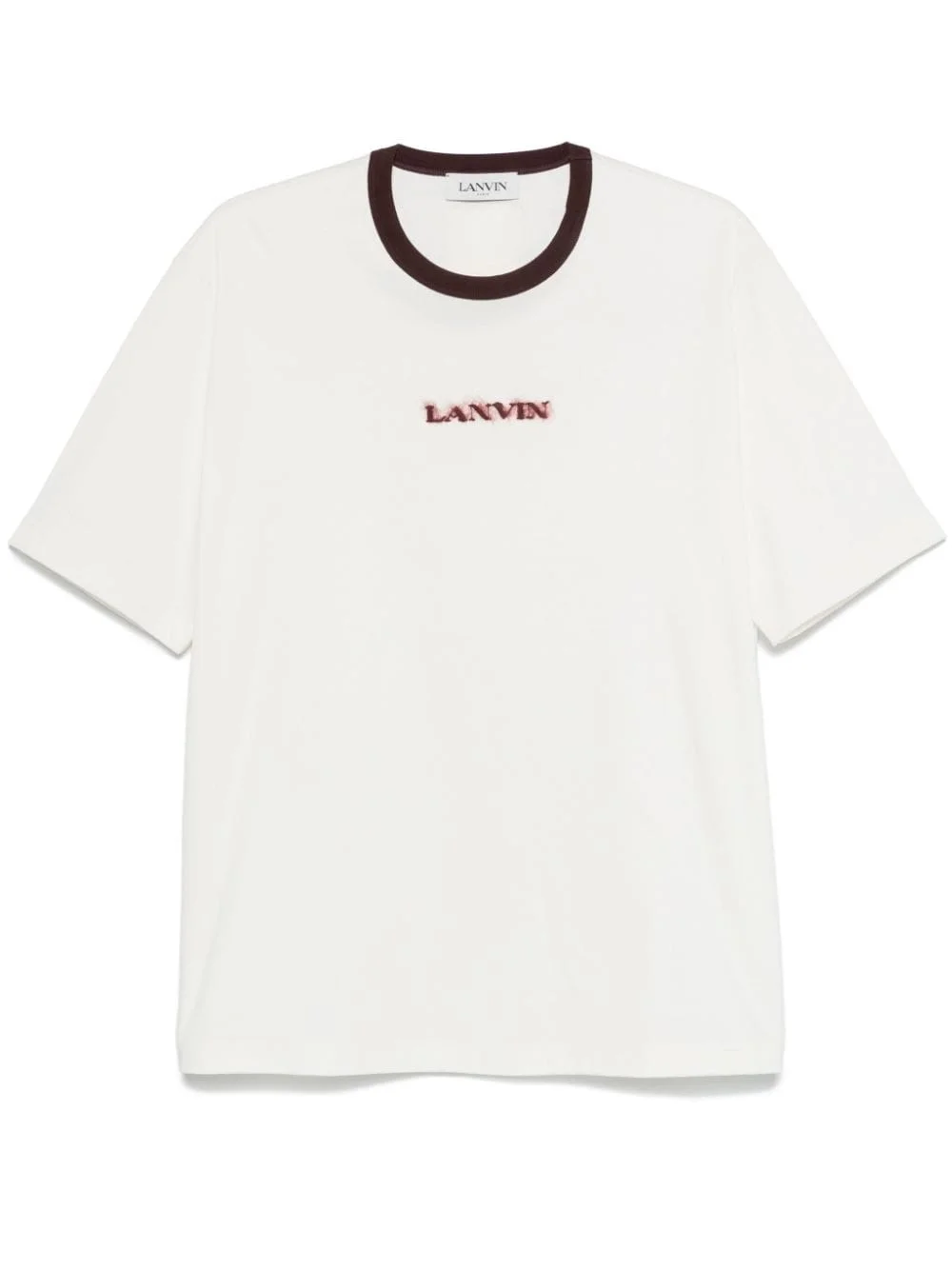 logo-applique T-shirt Highlights - White/bordeaux red - Cotton - Jersey texture - Applique logo - Crew neck - Contrasting cuffs - Short sleeves - Straight hem Made in Italy Composition Cotton 100%, Mohair 67%, Polyamide 28%, Wool 5% SIZE & FIT Model measurements Height 6 ft 2 in(1.88 m) Bust/Chest 36.61 in(93 cm) Hips 35.82 in(91 cm) Waist 27.95 in(71 cm) FittingInformation Designed for a relaxed fit, this piece allows for comfort and movement when worn Made from a midweight non-stretch fabric, this piece offers minimal elasticity when worn