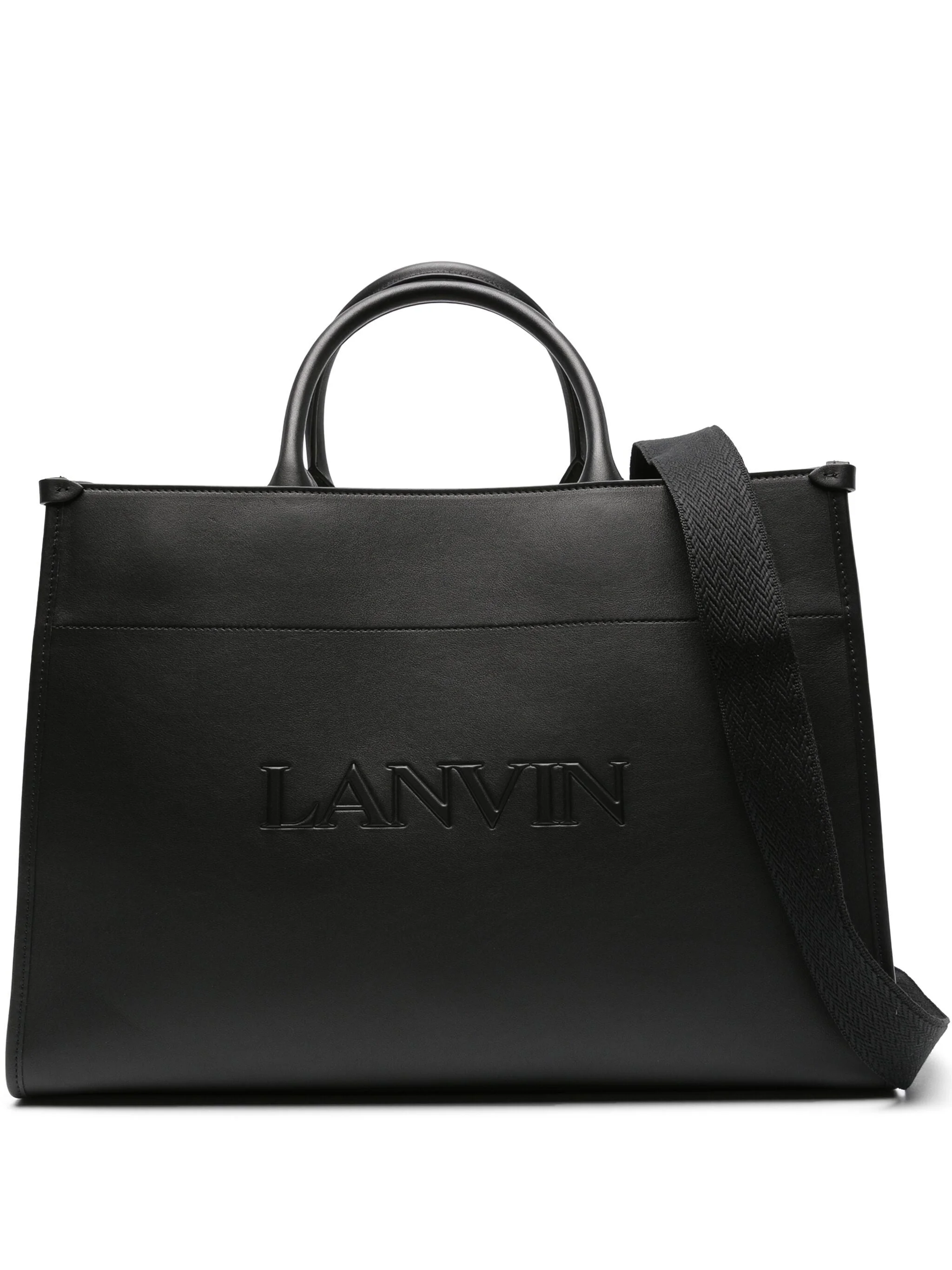 THIS LOGO-EMBOSSED LEATHER TOTE BAG IS A MUST-HAVE FOR ANY FASHION-FORWARD INDIVIDUAL. MADE FROM BLACK CALF LEATHER AND FEATURING AN EMBOSSED LOGO, THIS BAG IS BOTH STYLISH AND FUNCTIONAL. IT HAS AN OPEN TOP FOR EASY ACCESS, A DETACHABLE SHOULDER STRAP, AND TWO ROLLED TOP HANDLES FOR VERSATILE CARRYING OPTIONS. THE SPACIOUS MAIN COMPARTMENT ALSO INCLUDES A REMOVABLE POUCH, MAKING IT PERFECT FOR ORGANIZING ALL YOUR ESSENTIALS. ELEVATE YOUR EVERYDAY LOOK WITH THIS TIMELESS TOTE BAG.