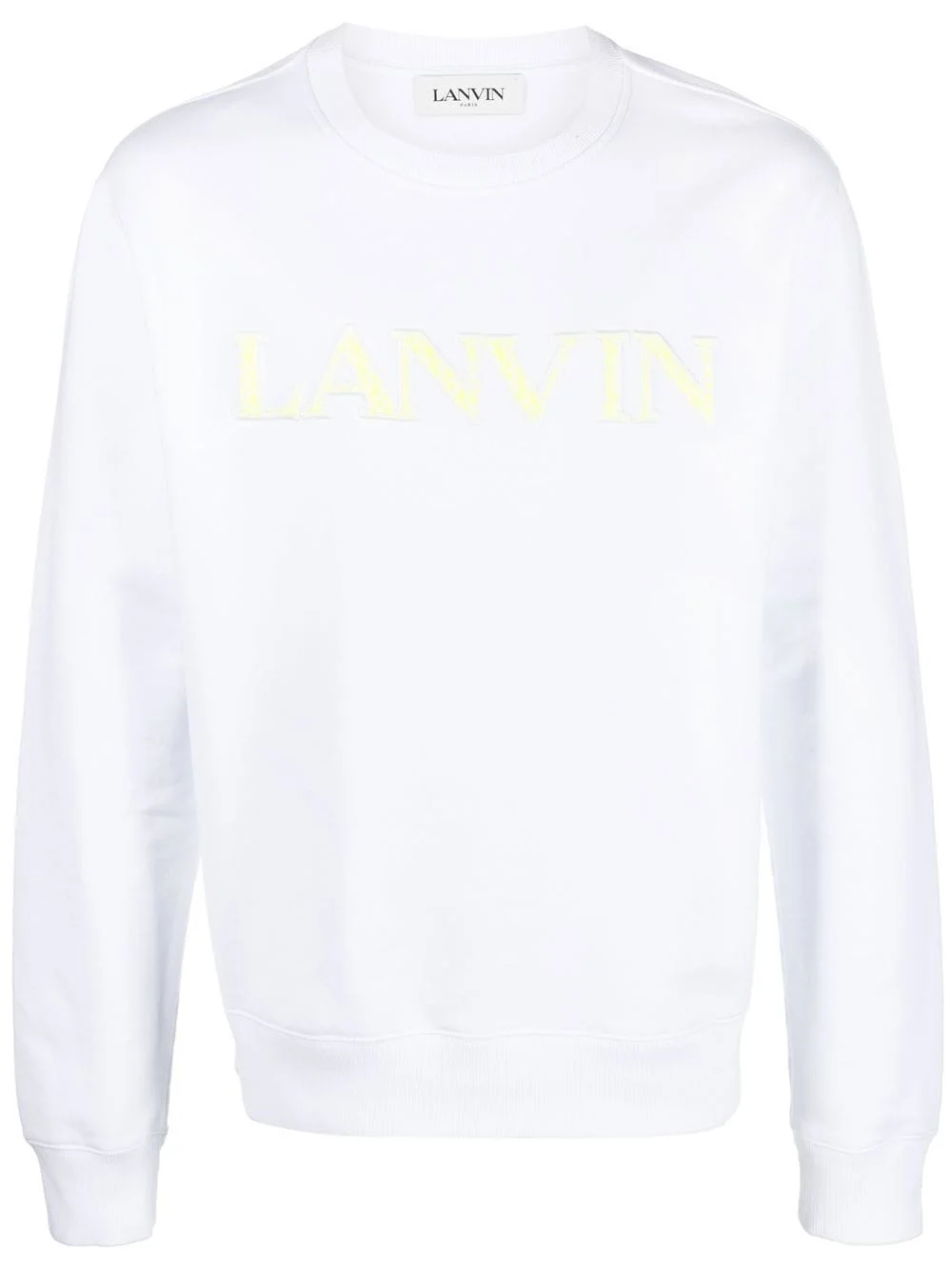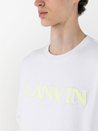 logo-embroidered cotton sweatshirt Part of Lanvin's streetwear-inspired offering, this cotton sweatshirt boasts the brand's logo embroidered across the chest with a zigzag pattern that references the one seen on the laces of the iconic Curb sneakers. The design instantly elevates the casual top while keeping its relaxed look. Imported Composition Polyester 100%, Cotton 100% SIZE & FIT Model measurements Height 6 ft 3 in(1.91 m) Bust/Chest 37 in(94 cm) Hips 37.79 in(96 cm) Waist 28.34 in(72 cm) FittingInformation This piece fits true to size. We recommend you get your regular size Cut for a relaxed fit Made with a mid-weight fabric Washing instructions Machine Wash