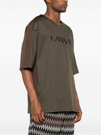 logo-embroidered cotton T-shirt Highlights - Dark olive green - Cotton - Jersey texture - Embroidered logo to the front - Embroidered motif to the side - Crew neck - Short sleeves - Straight hem Imported Composition Cotton 100%, Polyester 100% SIZE & FIT Model measurements Height 6 ft 2 in(1.88 m) Bust/Chest 35.03 in(89 cm) Hips 35.82 in(91 cm) Waist 27.95 in(71 cm) Measurement CHEST 50.39 in(128 cm) SLEEVE LENGTH 10.62 in(27 cm) Shoulder Width 22.04 in(56 cm) FittingInformation Designed to be unstructured, offering a loose fit throughout Made from a midweight non-stretch fabric, this piece offers minimal elasticity when worn This piece fits true to size – take your usual size