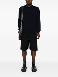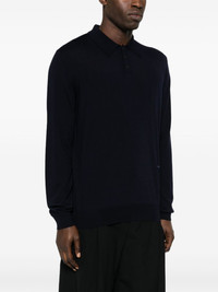 logo-embroidered polo shirt Highlights - Midnight blue - Merino wool - Fine knit - Polo collar - Long sleeves - Embroidered logo to the front - Ribbed cuffs and hem - Contrast stitching to the rear - Short front button fastening Made in Italy Composition Polyester 100%, Merino 100% SIZE & FIT Model measurements Height 6 ft 0 in(1.84 m) Bust/Chest 35.82 in(91 cm) Hips 37 in(94 cm) Waist 28.34 in(72 cm) FittingInformation Designed for a relaxed fit, this polo shirt offers comfort and movement The ribbed hem offers a close, comfortable fit Made with a midweight knit, this piece offers some stretch This piece fits true to size – take your usual size Washing instructions Hand Wash
