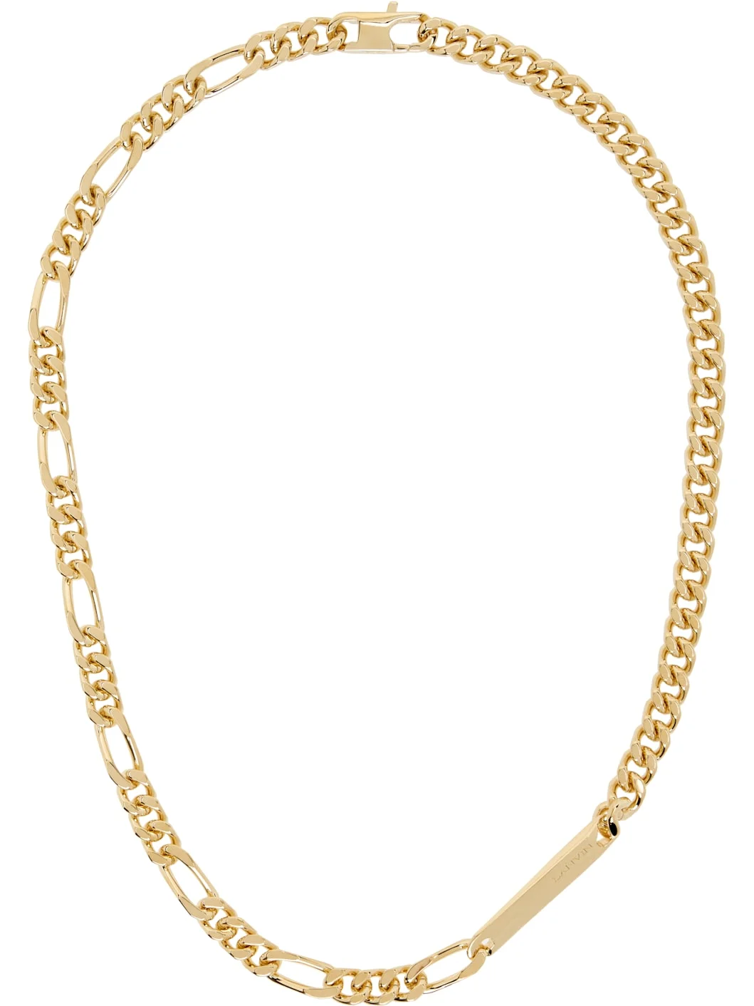 Curb chain necklace in gold-tone brass. · Logo plaque at face · Lobster-clasp fastening · L19.5" Supplier color: Gold Brass. Made in Italy 252254M145000