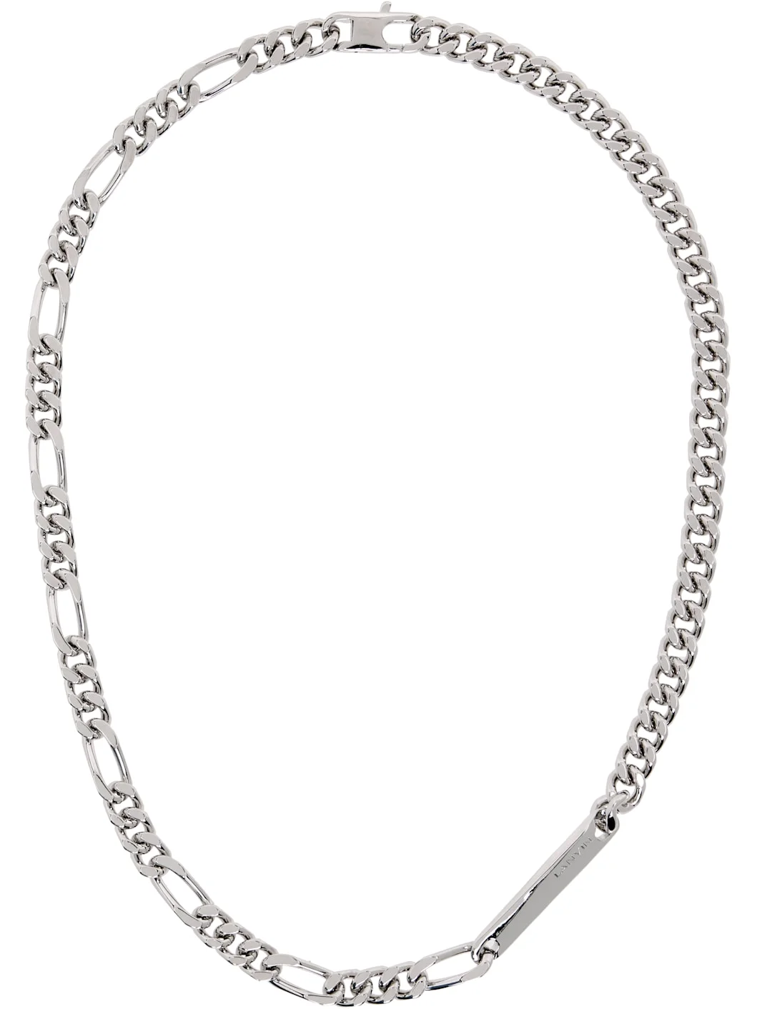 Curb chain necklace in silver-tone brass. · Logo plaque at face · Lobster-clasp fastening · L19.5" Supplier color: Silver Brass. Made in Italy 252254M145001