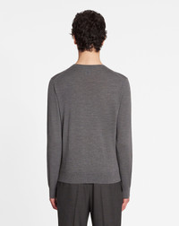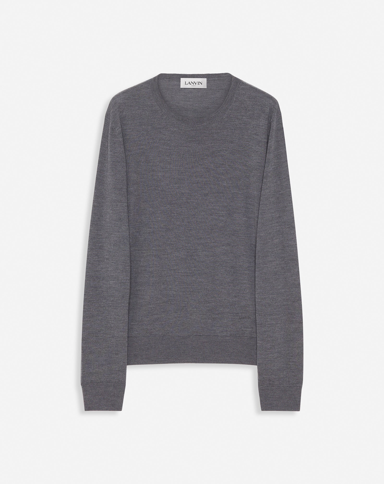 Details - Merino wool sweater with a round neck - Tone-on-tone Lanvin logo embroidered on the front - Fitted cut - Color: flecked dark gray - Made in Italy Size and fit - The model is 189 cm / 6'2" tall - He wears a size M Composition - Main material: 100% merino wool Cleaning and care - Hand wash in cold water SKU: RM-PO0008-K200-A23124M