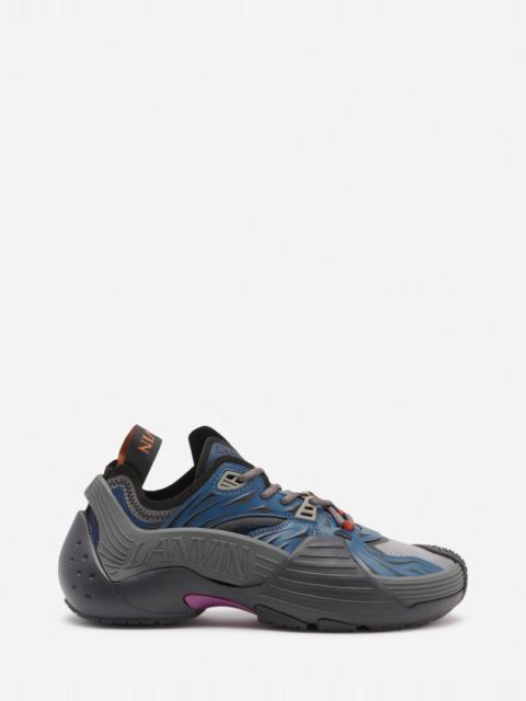 New original Lanvin creation, the Flash-X stands out by its original design and technicity. Made from pieces of technical materials all custom made, it surprises by its roundness, its palette of colors and its comfort. Details - Mesh Flash-X sneakers, technical material and TPU - Color: black - Front tongue with Lanvin logo - Back tongue with Lanvin logo - Lanvin logo on the side of the sole - Mother and Child logo on the edge of the upper - Made in Indonesia Composition - Main material: mesh - Material 2: PU micro-fiber - Material 3: EVA - Sole: TPU and rubber Cleaning and care - Using a damp cloth, make circular movements. In case of stains or marks, add a few drops of liquid soap. Allow to air dry. - Store in a dry, dark place in its original packaging. FM-SKIK00-MEFR-E2210