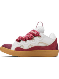 Low-top calfskin suede, nappa calfskin, and mesh sneakers. · Piping, cutouts, and rubberized trim throughout · Perforations at toe · Logo embossed at toe and outer side · Lace-up closure · Logo plaque and pull-loop at tongue · Padded tongue and collar · Jersey lining · Treaded rubber sole Supplier color: White/Raspberry Upper: calfskin, textile. Sole: rubber. Made in Portugal 252254M237077
