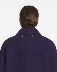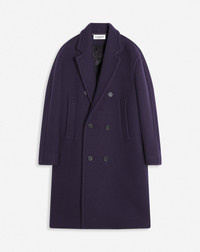 Made with virgin wool, this coat has thermoregulating properties and is ideal for cooler temperatures. It features a Lanvin engraved bar, the House's subtle new signature. Details - Oversized double-breasted coat in woven virgin wool - Collar with notched lapels - Two welt pockets in front - Made in Italy Size & fit - This is an oversized fit, size down if you prefer a slimmer fit - For more information, please see our size guide. Composition - Main fabric : 100% virgin wool woven - Lining : 100% viscose woven SKU: RM-CO0044-5958-A2477648