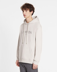 Details - Cotton fleece hoodie - Tone-on-tone Lanvin Paris logo embroidered on the front - Oversized fit - Color: mastic - Made in Italy Size and fit - The model is 187 cm / 6'1'' tall - He wears a size M Composition - Main material: 100% cotton - Embroidery: 100% polyester Cleaning and care - Turn inside out before cleaning - Do not iron the embroidery SKU: RM-HO0009-J210-A23042XL