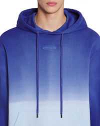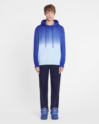 With its loose fit and dip dye effect, this hoodie is ideal for comfortable, stylish everyday wear. The "dip dye" technique involves immersing the pieces in a colored bath to obtain this color gradient. Therefore, each piece is different and unique. Details - Oversized fleece hoodie with a gradient effect - Tie and dye effect - Wide shoulders and long sleeves - Tone-on-tone embroidered Lanvin logo patch on front - Made in Portugal Size & fit - For more information, please see our size guide. Composition - Main fabric : 100% cotton knitted SKU: RM-HO0009-J132-E24270S