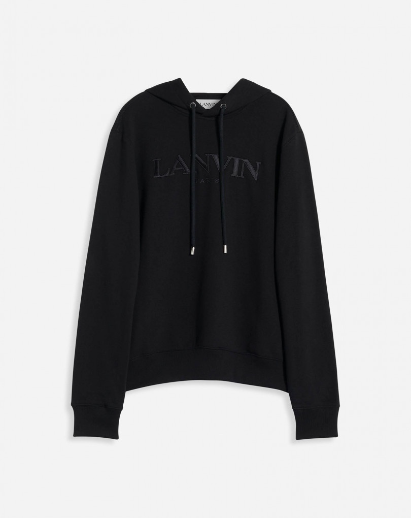Details - Hoodie decorated with Lanvin Paris tone-on-tone embroidery on the front. - Made in Italy - Color: Black Composition - Main material: 100% Cotton Cleaning and care - Gently iron on the reverse side - Turn inside out before cleaning - Very delicate care RM-HO0001-J210-P2210
