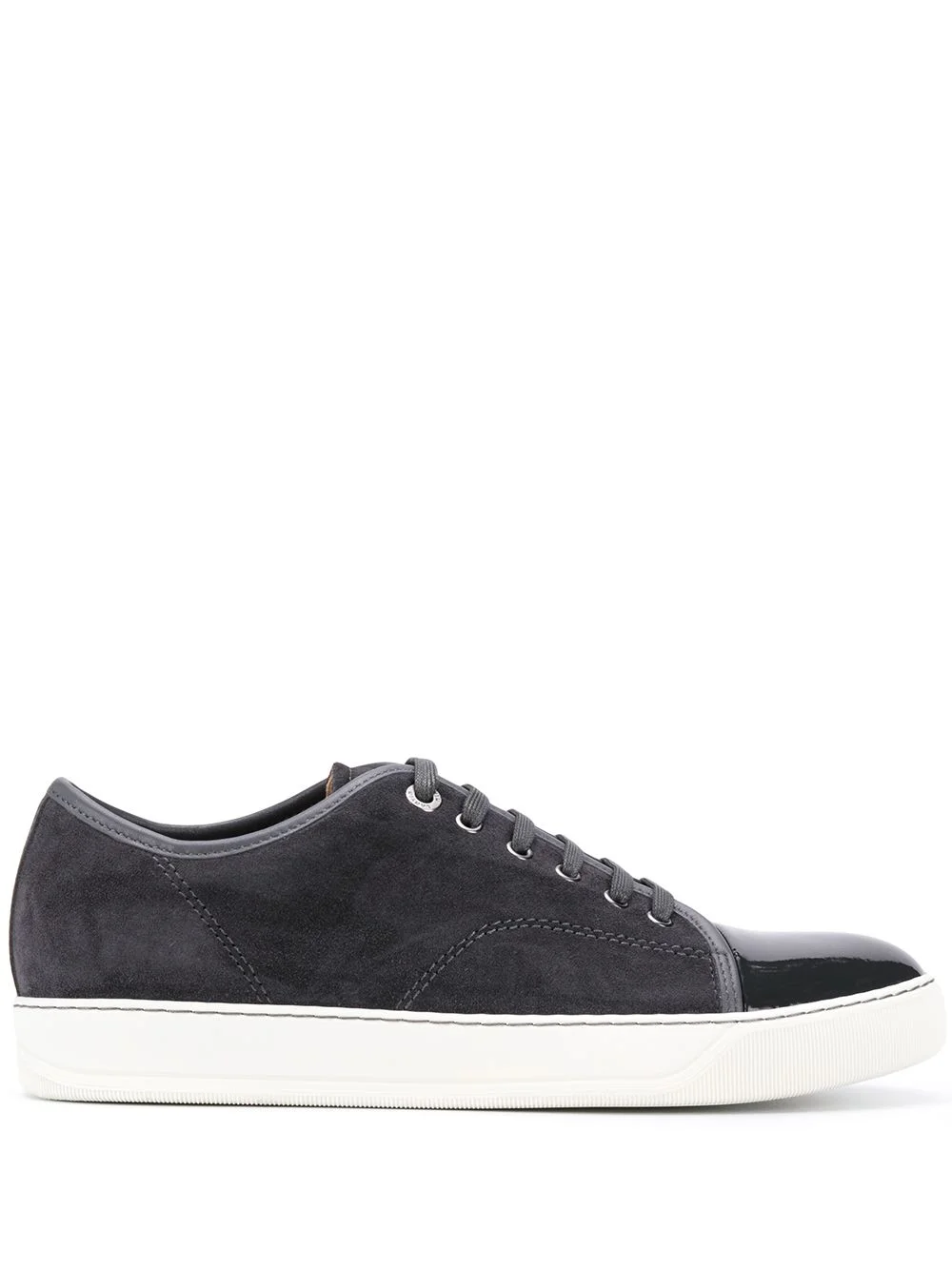 patent toe sneakers Renowned for their impeccable quality, timeless styling and strong detail-oriented aesthetic, Parisian fashion house Lanvin presents these grey velvet sneakers. Featuring a lace-up front fastening, a white rubber sole and a contrasting patent leather toecap. Imported Composition Outer: Calf Leather 100%, Velvet 100% Lining: Calf Leather 100% Sole: Rubber 100% SIZE & FIT FittingInformation This piece fits large – take one size down