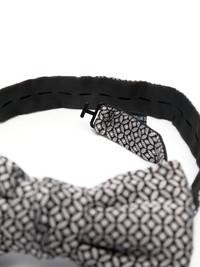 patterned-jacquard silk bow Imbued with Lanvin's quintessential Parisian elegance, this bow is crafted from black silk enlivened by an all-over jacquard. The tactile pattern is made up of intricate geometric detailing that's rendered in white. Highlights - Black/white - Silk - Patterned jacquard - Bow detailing - Adjustable fit Made In France Composition Silk 100% Washing instructions Dry Clean Only