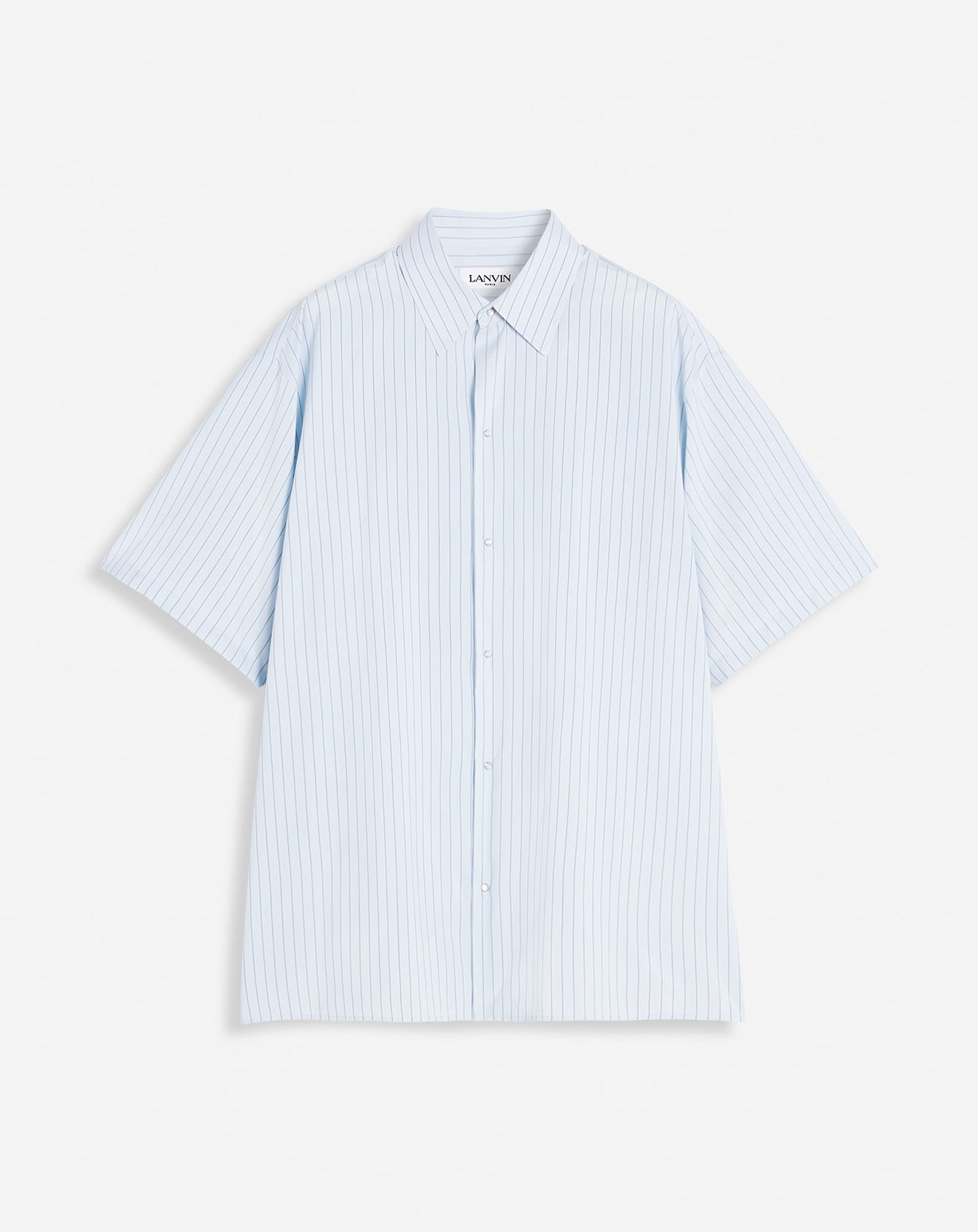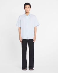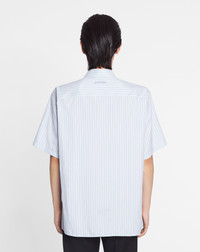 The stripes on this shirt will go perfectly with a summer outfit with a chic, light style. With snap buttons to widen the collar, it's an easy shirt to slip on. Details - Pea jacket shirt in technical fabric - Striped motif - Loose fit and stand-up collar - Wide shoulders - Patch with the Lanvin logo in the same fabric embroidered on the back - Made in Italy Size & fit - For more information, please see our size guide. Composition - Main fabric : 58% viscose woven,100% polyester woven,42% silk woven,100% polyester woven SKU: RM-SI0003-5929-E2427038