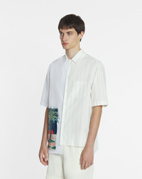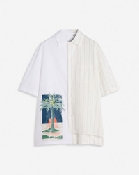 This shirt embraces the concept of Contrast, which Jeanne Lanvin held dear, with its combination of plain fabric and stripes in an asymmetrical fit. This unique design features a cheerful and colorful print. Details - Asymmetrical printed cotton shirt - Loose fit - Fastening with mother-of-pearl buttons - Made in Italy Size & fit - This style fits true to size, take your normal size - For more information, please see our size guide. Composition - Main fabric : 100% cotton woven SKU: RM-SI0014-6001-P25001043