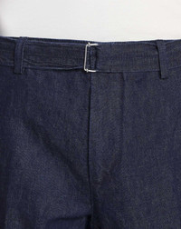 Details - Japanese denim pants with a removable belt, featuring raw hems and pleats made by laser - Color: Navy Blue - Made in Italy Size and fit - The model is 186 cm / 6'1'' tall - He wears a size 30 Composition - Main Material: 60% Cotton, 40% Linen Cleaning and care - Requires very delicate care - Turn inside out before cleaning SKU: RM-TR0111-D060-E232930