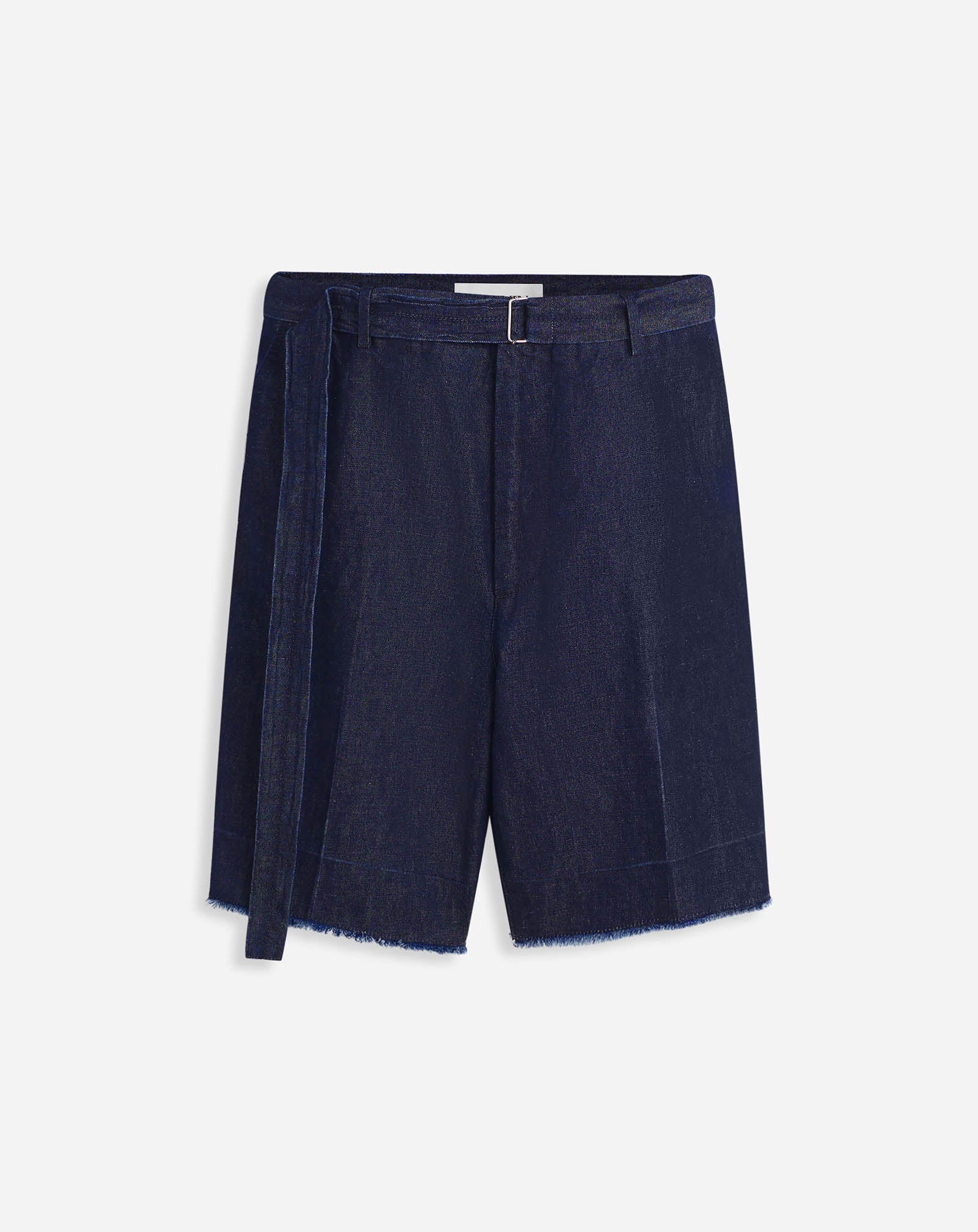 Details - Japanese denim shorts with a removable belt, featuring raw hems and pleats made by laser - Color: Navy Blue - Made in Italy Size and fit - The model is 189 cm / 6'2.5" tall - He wears a size 30 Composition - Main Material: 60% Cotton, 40% Linen Cleaning and care - Requires very delicate care - Turn inside out before cleaning SKU: RM-TR0205-D060-E232930