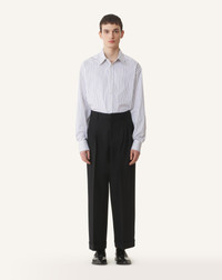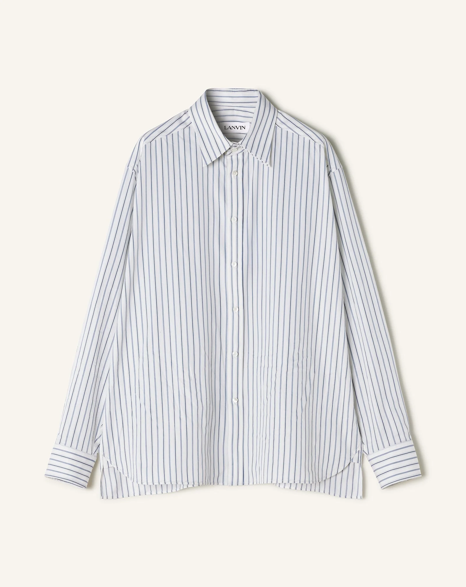 This striped shirt revisits a classic from the Lanvin man's wardrobe. Its features a simple design that easily complements a sophisticated daytime outfit. The shirt is embellished with a double collar, which adds a unique and resolutely modern detail. Details - Relaxed-fit striped cotton shirt - Shirt collar - Detachable second collar - Single button fastening on the cuffs - Mother-of-pearl button closure - Made in Portugal Size & fit - For more information, please see our size guide. Composition - Main fabric : 100% cotton woven SKU: RM-SI0105-6167-H25028538