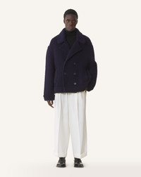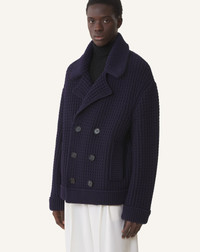 The design of this coat is inspired by a play of knits, featuring ribbed details on the back. Its knitted wool fabric, combined with a relaxed fit, ensure exceptional warmth and comfort for winter wear. Details - Relaxed-fit wool peacoat - Notched collar - Dropped shoulders - Ribbing details on the back - Ribbed cuffs - Double-breasted button closure - Side welt pockets - Made in Turkey Size & fit - This is a relaxed fit, size down if you are between two sizes - For more information, please see our size guide. Composition - Main fabric : 100% wool knitted SKU: RM-CO0022-K066-H252562XSX